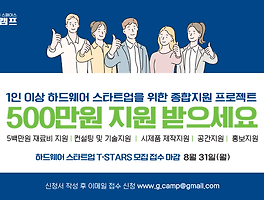 | 2020 하드웨어 스타트업 프로그램 T-Stars 참여팀 모집(1인 이상 가능) (0) | 2020.08.14 |