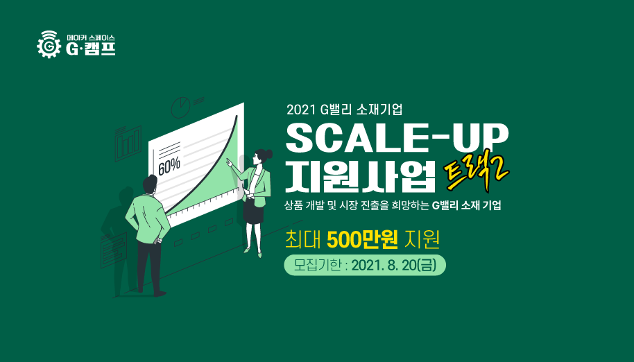 서울산업진흥원(SBA)은 G밸리 기업(구로구, 금천구 기업)의 경쟁력 강화와 지역경제 활성화 주도기업으로 혁신 성장할 수 있도록 우수 제품, 기술, 서비스를 보유하고 있는 기업의 상용화와 고도화를 촉진하고 안정적 시장 진출을 지원하기 위한 2021 G밸리 스케일업(트랙2) 참여기업을 모집하고 있으니 많은 관심과 참여바랍니다.