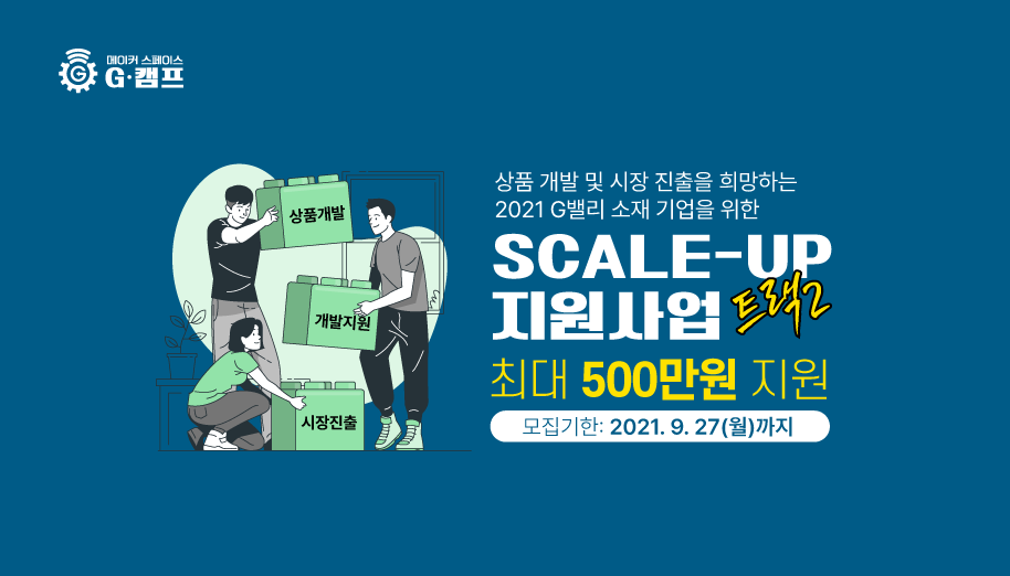 안정적 시장 진출을 지원하기 위한 2021 G밸리 스케일업(트랙2) 참여기업을 모집하고 있으니