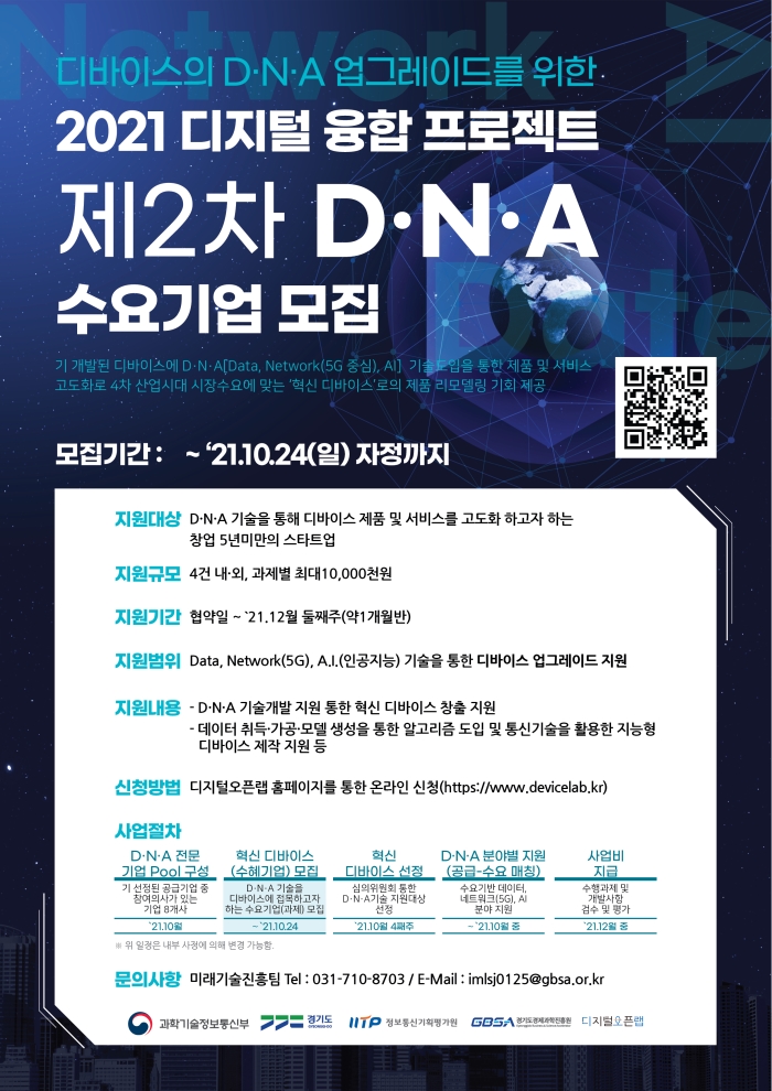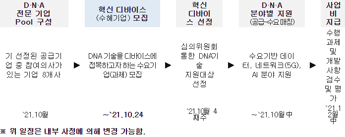 - D·N·A 기술개발 지원 통한 혁신 디바이스 창출 지원