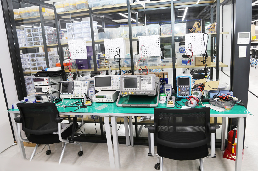 PCB 프린터, SMT 장비, 납땜 장비가 설치된 곳입니다. PCB 프린터는 5대를 보유하고 있습니다.