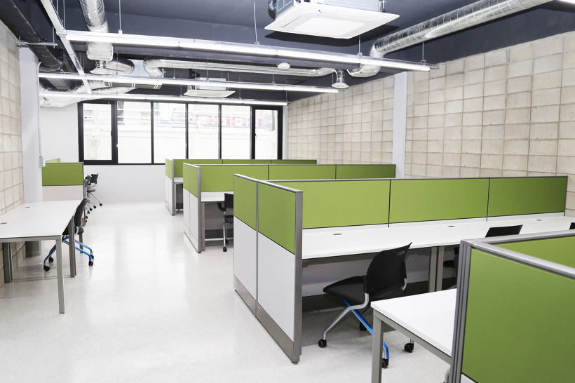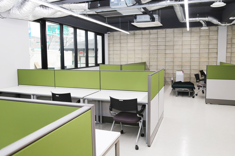 하드웨어 스타트업 실 모습입니다. 하드웨어스타트업이 4개월간 출퇴근 형태로 사용가능하며, 500만원 이상의 재료비를 제공하며, 가공, 모델링, 전기/전자/소프트웨어 분야의 서비스를 제공합니다.